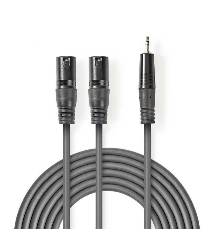 Cablu audio stereo 2x XLR 3-Pin tata - 3.5 mm Jack tata 1.5m gri Nedis