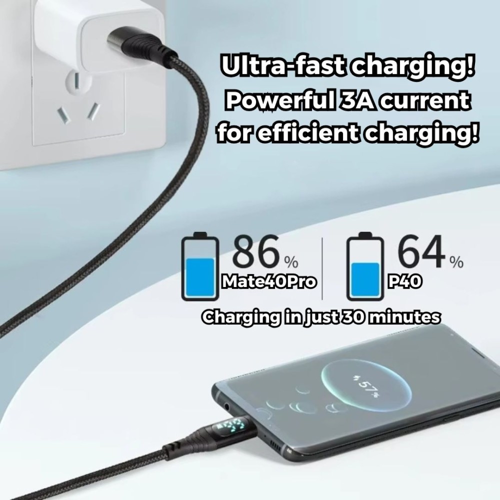 Dotat cu un afisaj digital inovator, cablul iti permite sa monitorizezi in timp real puterea de incarcare. Aceasta functie iti ofera siguranta ca dispozitivul tau primeste exact nivelul optim de energie. Este ideal pentru utilizatorii care vor sa fie mereu informati despre starea incarcarii si sa se asigure ca dispozitivele lor sunt incarcate eficient si in siguranta.