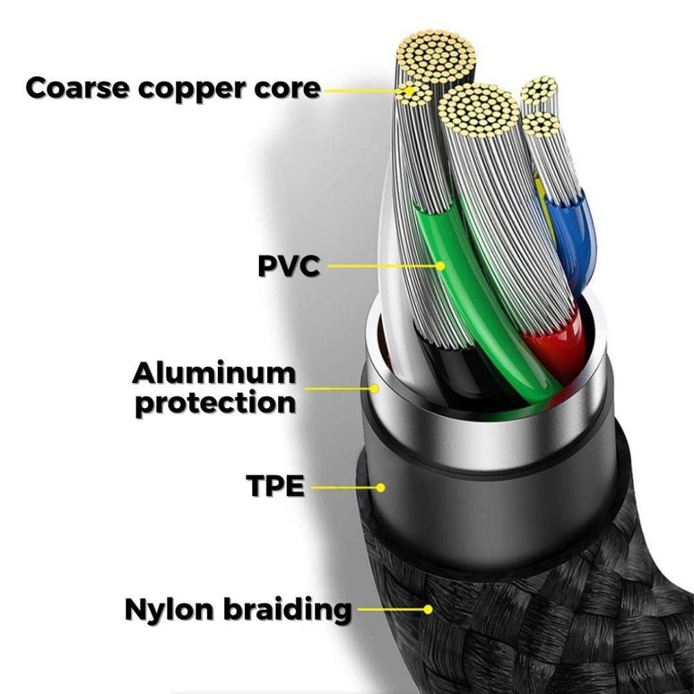 Material cablu: Invelis impletit din nylon, carcasa conector din aliaj de aluminiu, cupru pur