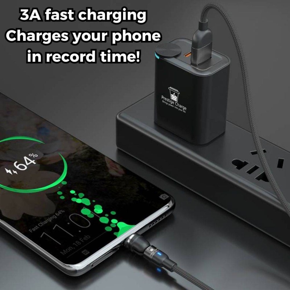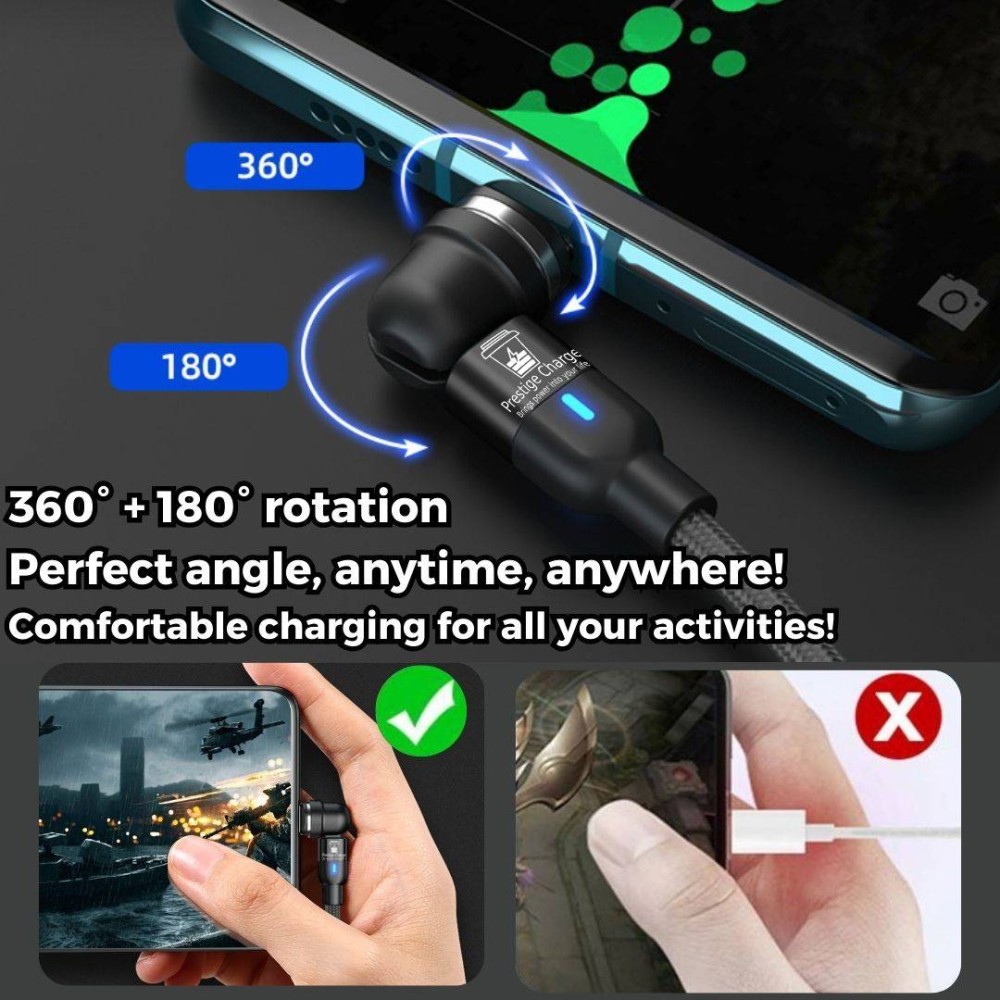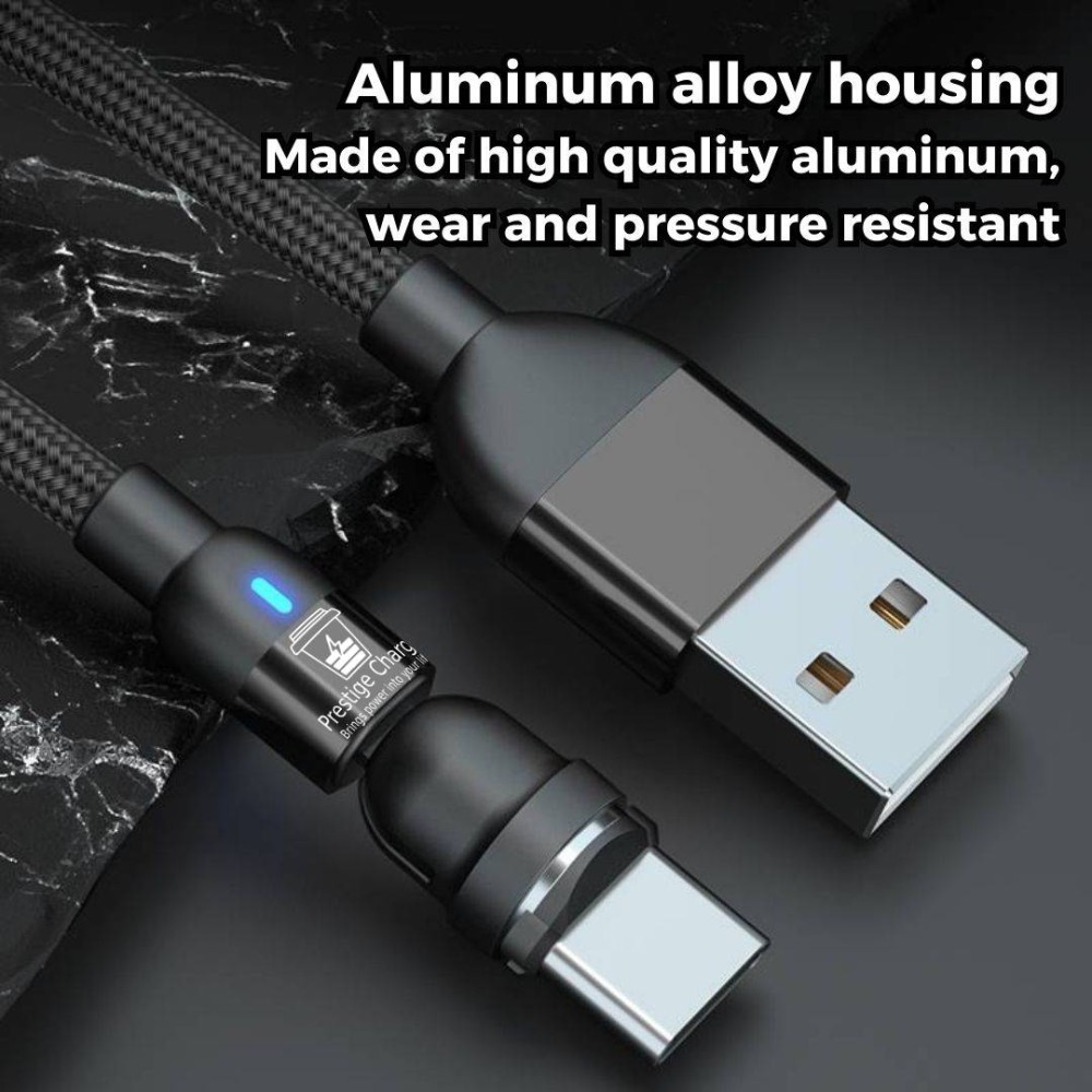 Cablu Date si Incarcare Rapida PRESTIGE CHARGE®, 3 in 1, USB la Type C, Lightning, Micro-USB, Cap Magnetic, Rotire 180-360 grade, Compatibil SuperFast