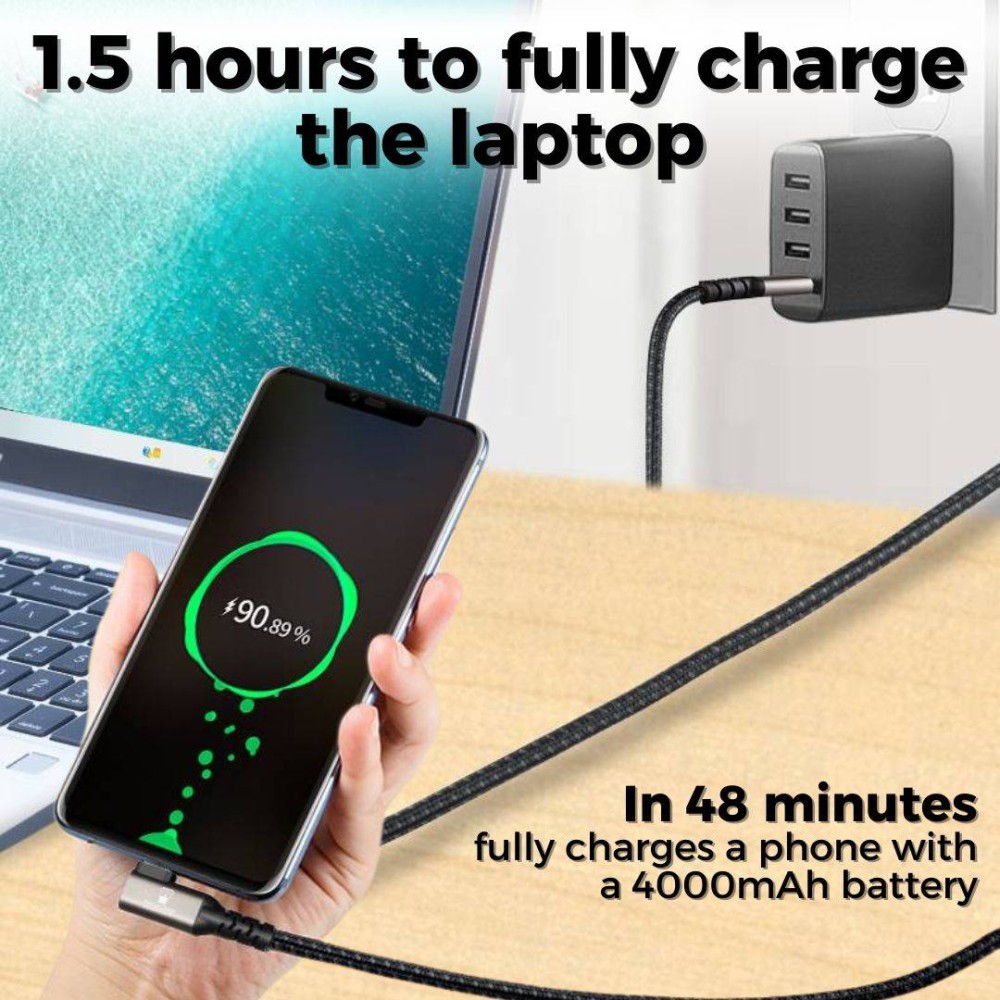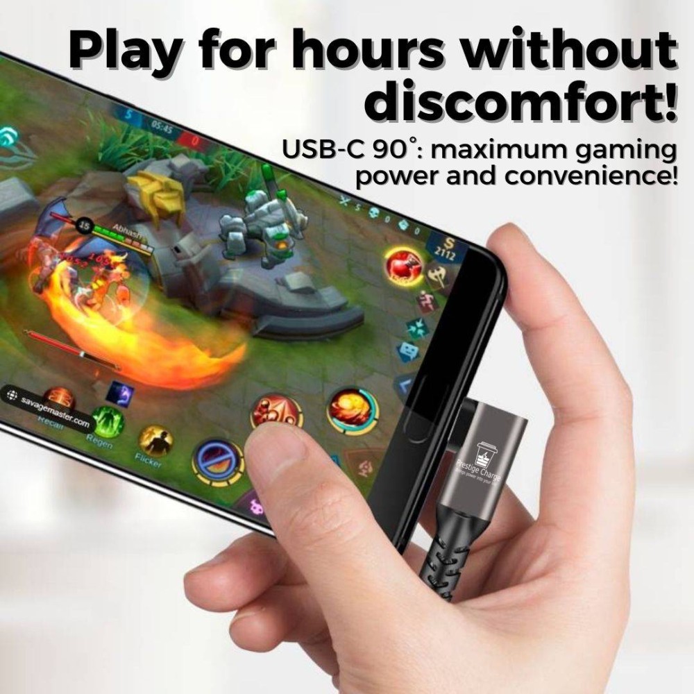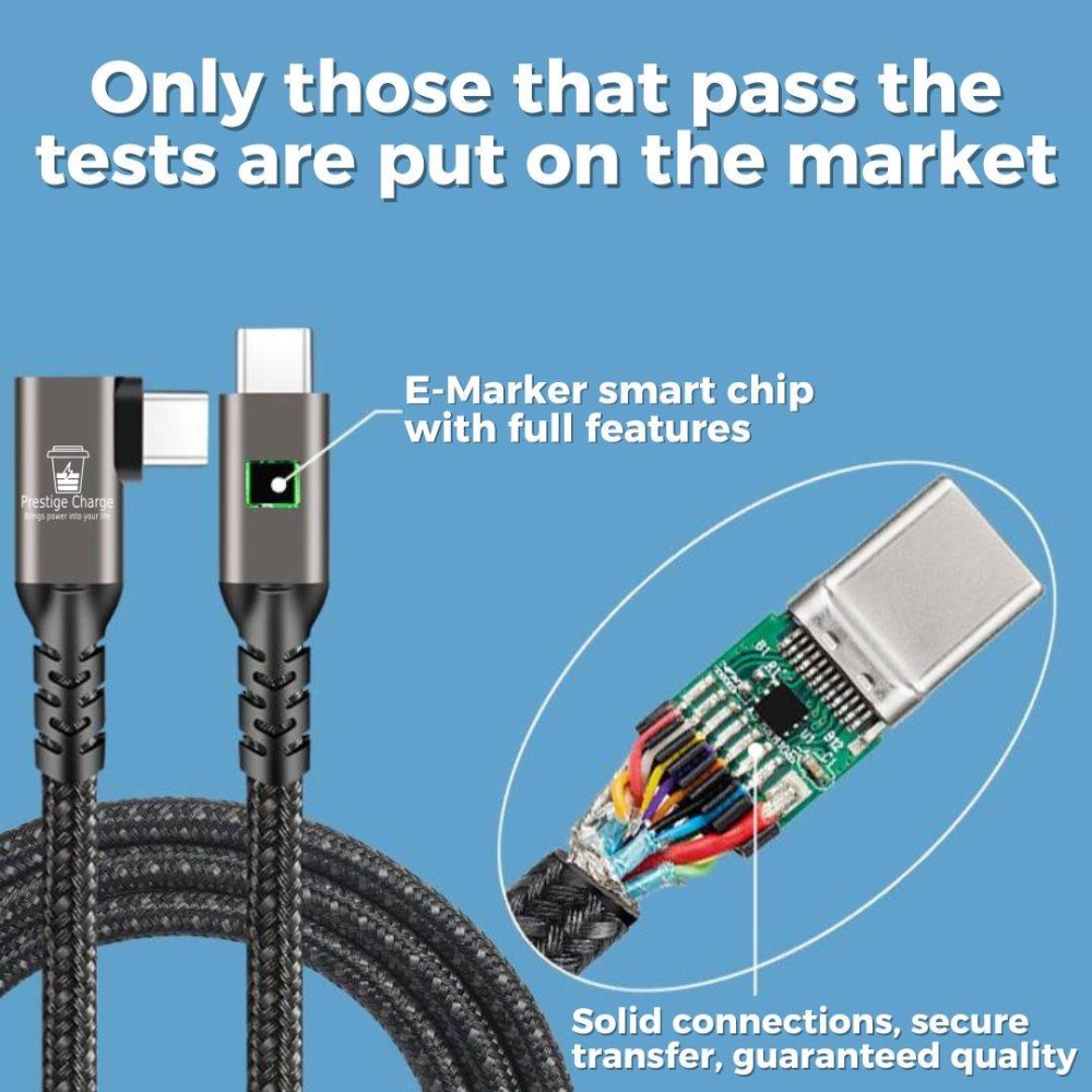 Cablu Date si Incarcare Rapida USB-C 3.2 max 100W, PRESTIGE CHARGE®, TEXTIL PREMIUM, transfer date 20Gbps, video 4K@60Hz, Unghi 90 de Grade, USB-C la