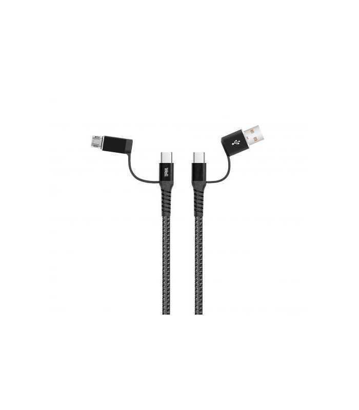 Cablu de date si incarcare 4in1 1m 3A Well negru