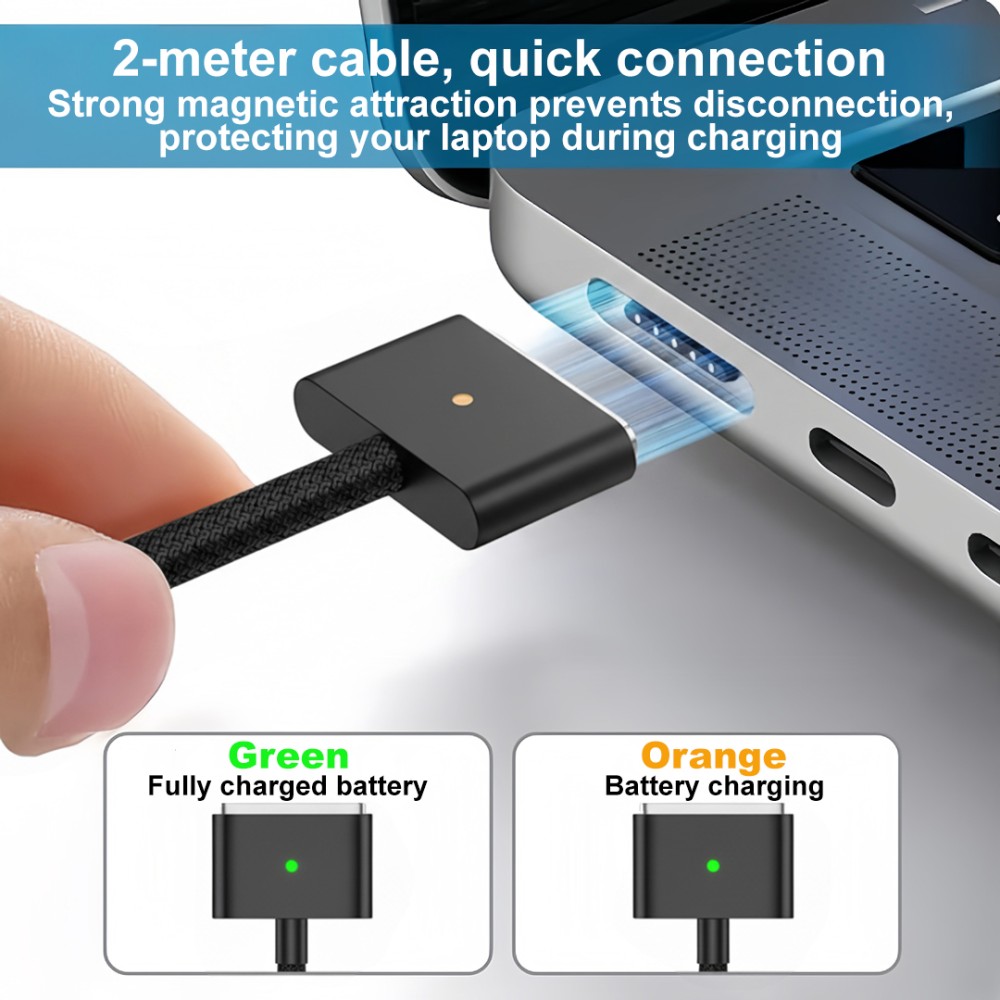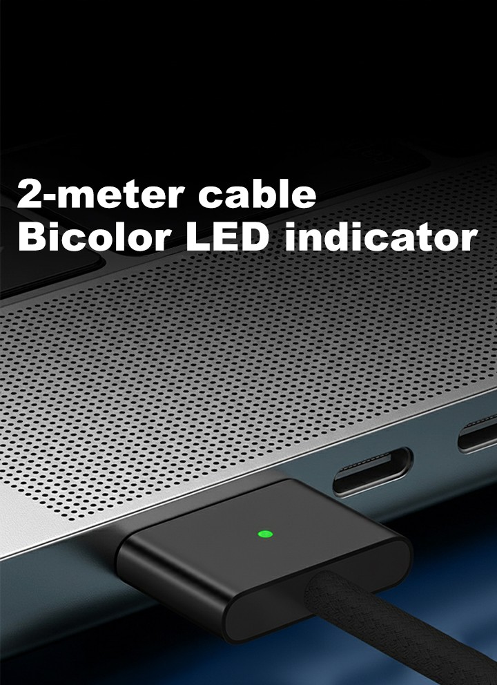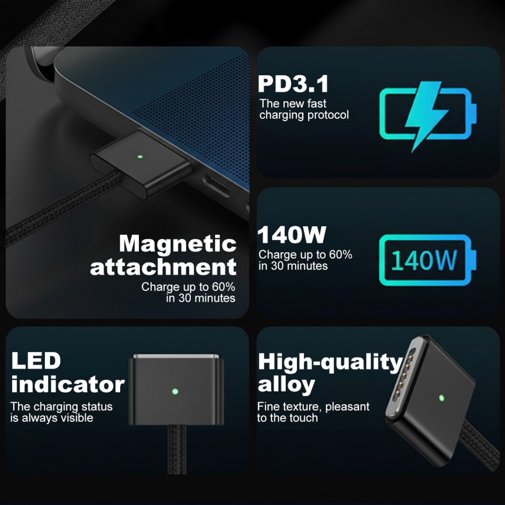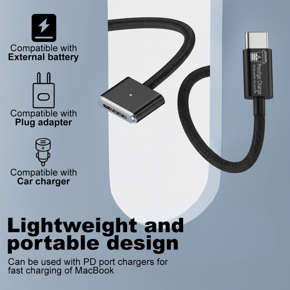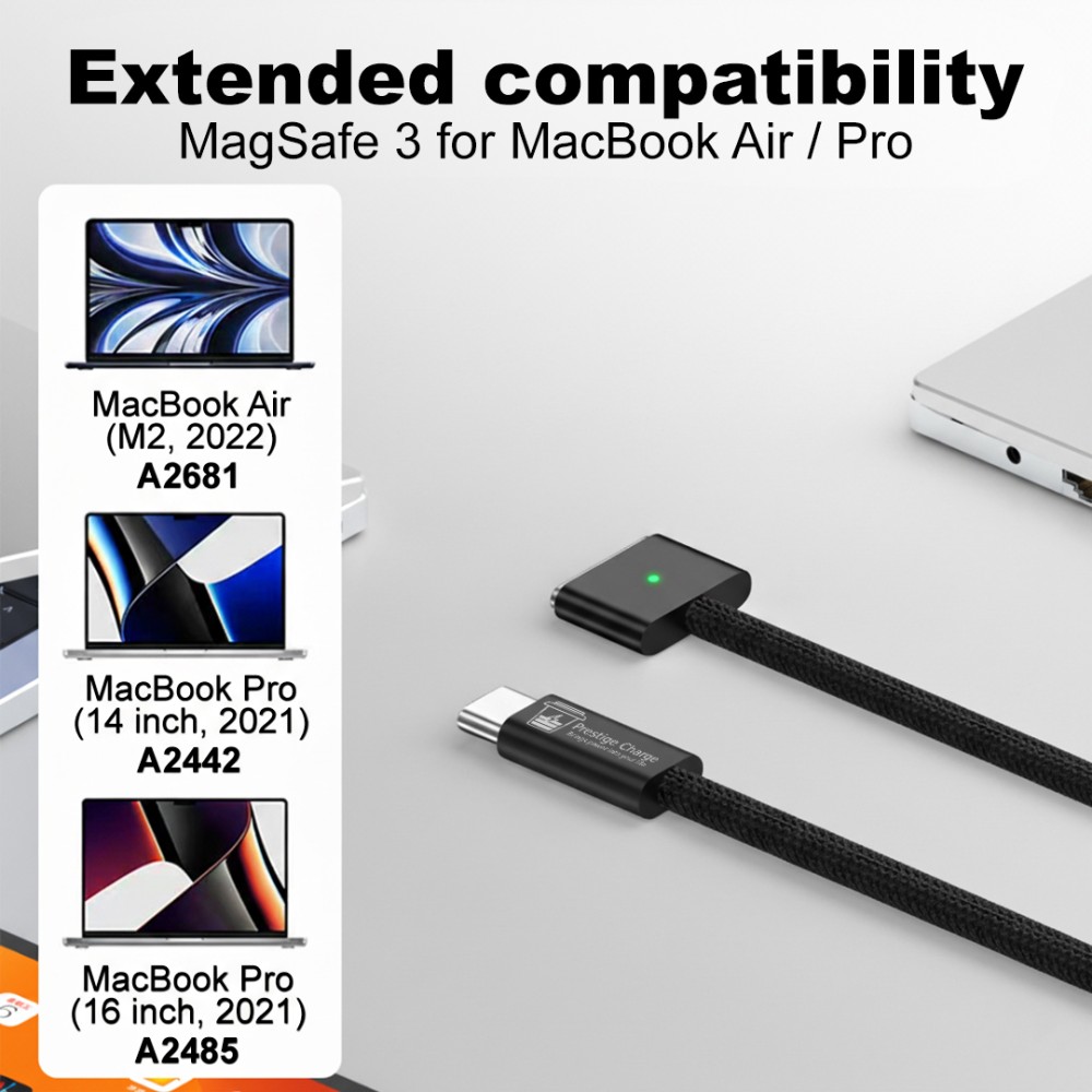 Cablu de Incarcare Magsafe 3, PRESTIGE CHARGE®, pentru Apple Macbook Air / Pro, 140W Maxim, USB C-Magsafe 3, PD3.1, Afisaj Indicator LED, Magnetic, Ma