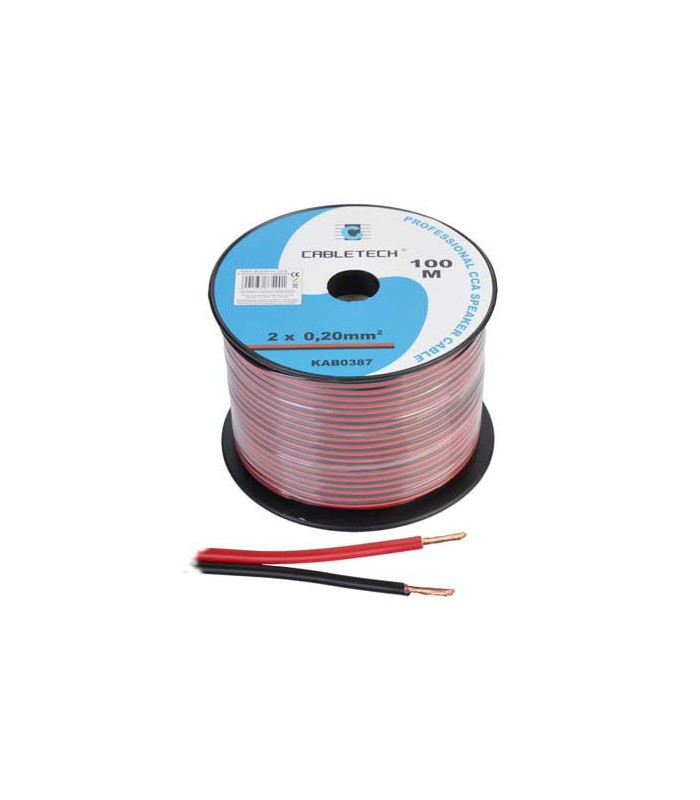 Cablu difuzor CCA 2 x 0.2 mm2, culoare negru-rosu. Rola 100 m, pret 1 metru liniar.