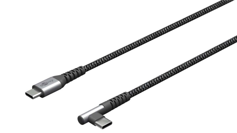 Cablu elegant extra-robust textil 0.5m 60W USB2.0 type C 90 grade - USB type C mufe metalice Goobay 64658