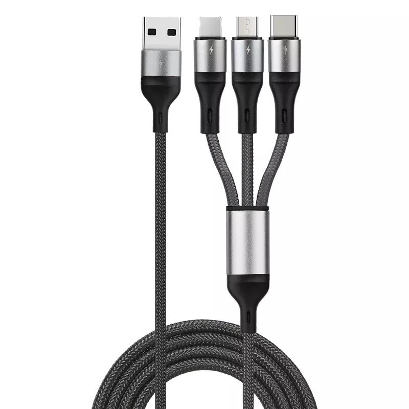Cablu incarcare 3 in 1, PRESTIGE CHARGE®, pentru Iphone, Samsung, Huawei, 15WA, USB la USB-C, LIGHTNING, MICRO USB, TYPE C, 1.2m, negru