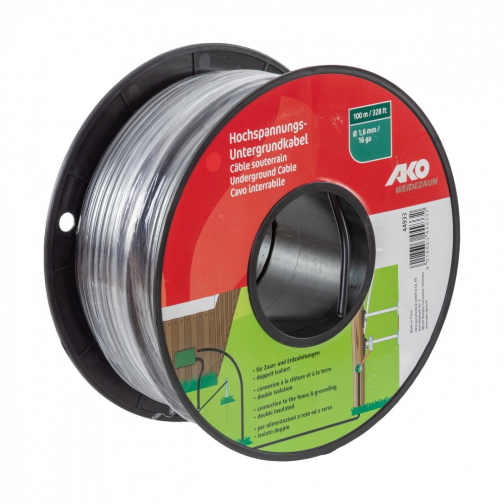 Cablu cu izolație de înaltă calitate, adecvat pentru conducerea tensiunii înalte, generate de aparatul de gard electric. Se vinde la metru. Cablu special, cu izolație electrică dublă, pentru transportarea tensiunii înalte. Cablul se vinde la metru, prețul și greutatea fiind exprimată pentru o cantitate de un metru. Rola întreagă are 100 de metri. Izolația acestui cablu este suficient de groasă, iar materialul din care este fabricat are proprietăți fizice adecvate pentru transportul în siguranță al tensiunii înalte. Se utilizează la: Transportul impulsurilor de la generator la gardul electric, în cazul în care generatorul este amplasat la o distanță mai mare. Ideal pentru situațiile în care se dorește protejarea generatorului într-o clădire. Interconectarea mai multor împrejmuiri separate, atunci când acestea sunt electrificate de un singur aparat de gard electric. Cablul poate fi montat și subteran. Subtraversarea porților gardului electric, prin montare în sol – pentru a menține electrificarea porțiunii de gard aflate după poartă, atunci când aceasta este deschisă. Util în orice aplicație unde este necesară transmiterea în siguranță a tensiunii înalte (max. 20 kV), fără risc de scurtcircuit. Cablurile cu izolație obișnuită (subțire) nu sunt adecvate pentru transportul tensiunii înalte, deoarece, în zonele unde cablul se apropie de obiecte din teren (pământ, pereți, stâlpi etc.), pot apărea scântei care pătrund prin izolație și duc la pierderi de energie. Recomandări de utilizare Distanța maximă a cablului nu trebuie să depășească 100 de metri. Cablul permite transferul tensiunii de până la 20 kV, fără a compromite izolația în timp. Dacă montajul se face subteran, în strat de pietriș (de exemplu, sub un drum), se recomandă utilizarea unui tub protector, pentru a preveni deteriorarea mecanică a izolației. Conectarea cablului la gard se realizează obligatoriu cu un conector, pentru a preveni apariția conexiunilor electrice slabe sau arderea lițelor subțiri ale conductorului gardului electric. Date tehnice Tip conductorAluminu, plinDiametru conductor1,6 mmRezistență electrică0,025 Ω/m
