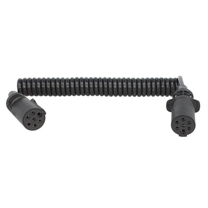 Cablul spiralat Hella 7 pini tip N este destinat conectării electrice între un vehicul tractor și o remorcă, prin standardul ISO 1185 (sau echivalent), oferind o conexiune sigură, flexibilă și durabilă. Formatul spiralat îi permite să se întindă la nevoie, dar să se retragă fără încurcări, asigurând o manipulare comodă și fiabilă.