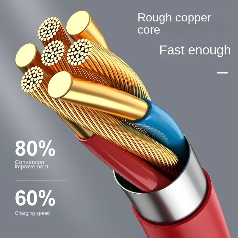 Realizat din materiale de inalta calitate, cablul dispune de fire din cupru de puritate ridicata, protejate de un strat de izolare din TPE durabil si flexibil. Acest design avansat garanteaza rezistenta la indoire, suportand peste 30.000 de indoiri fara a compromite performanta. Cipul de ultima generatie integrat in cablu asigura o incarcare sigura si protectie impotriva supratensiunilor si scurtcircuitelor.