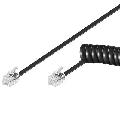 Goobay (Germania) Cablu RJ10 telefonic pentru receptor 4 metri tip spiralat mufe RJ 10 4 pini 4 contacte (4P4C) culoare negru Model: TEL RJ10-S-BK/4,0-BU.