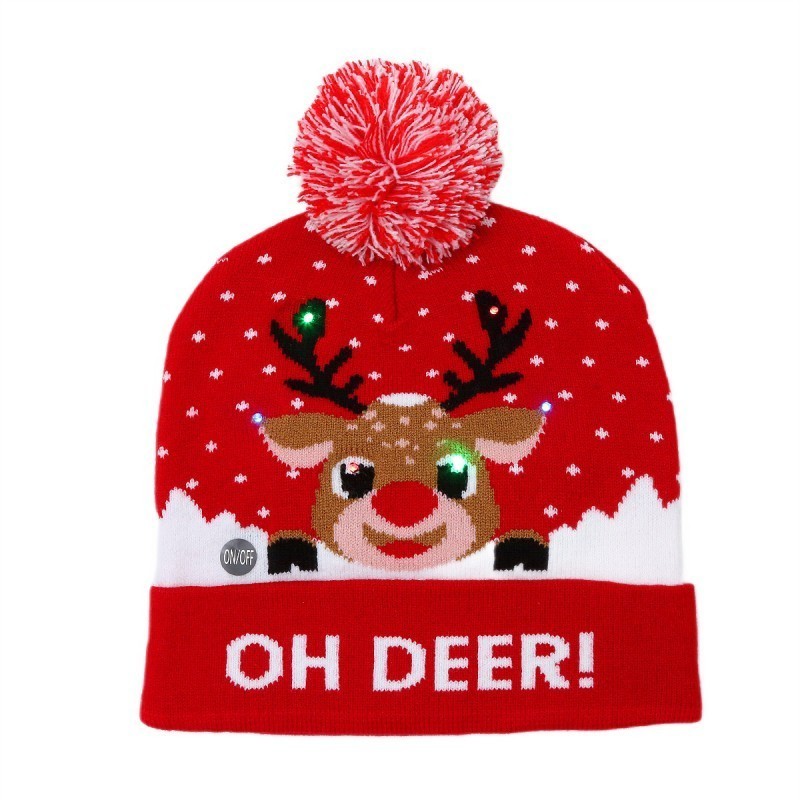 Caciula de iarna cu LED si pompom, tematica de Craciun cu ren simpatic – JollyMag CZ50