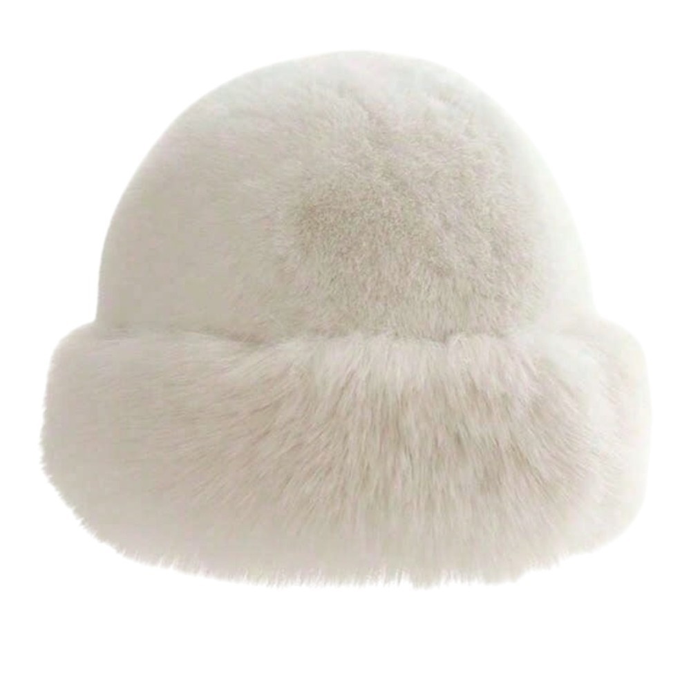 Caciula din blana artificiala moale tip bucket, model elegant - Alb