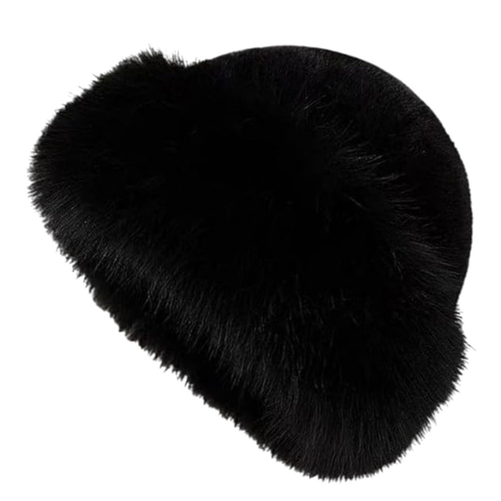 Caciula din blana artificiala moale tip bucket, model elegant - Negru