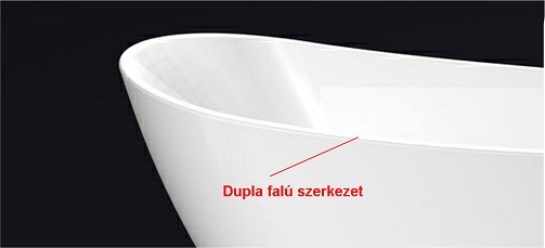 Datorită construcției solide, cu 2 straturi, nu este nevoie de o structură de susținere grea din oțel, astfel încât poate fi amplasat și pe podele critice din punct de vedere static. Un material izolator special între cele două straturi acrilice asigură menținerea temperaturii apei. Corp de cadă din acrilic sanitar, cu pereți dubli, rezistent la murdărie. Grosimea stratului acrilic exterior: 3-4 mm, grosimea stratului acrilic interior: 4-5 mm. Are atât o scurgere, cât și un preaplin. Există un picior de nivelare ascuns în partea de jos a căzii.