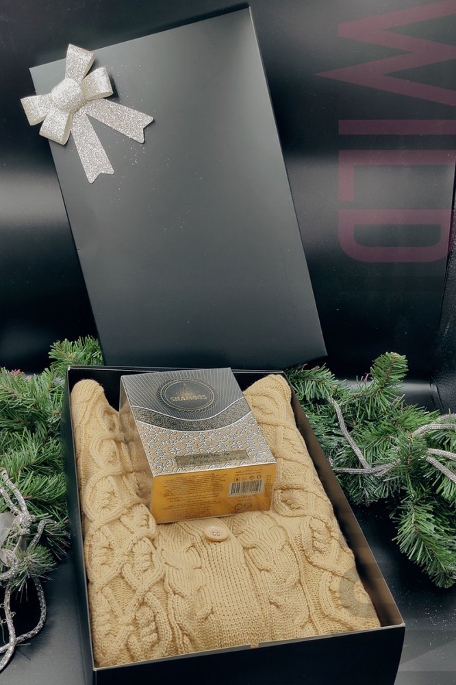 Cadoul contine: 1) Cardigan lung fashion din material tricotat Produs masurat si verificat - cardigan lung fashion - din material tricotat - calduros - 2 buzunare - inchidere cu nasturi in fata - lungimea aproximativa a produsului 120cm (de la umar in jos) - material: 100%Acryl 2) Shamoos este un parfum arăbesc pentru bărbaţii care apreciază parfumul de durată. Puterea proaspătă a citricelor cu un indiciu de lavandă este alegerea potrivită pentru bărbatul modern. - apa de parfum - barbati - 100ml - note de varf: lavandă - note de mijloc: lemn de santal, iasomie - note de baza: lemn de agar, trandafir Origine Emiratele Arabe Unite 3) Cutie de cadou 4) Fundita