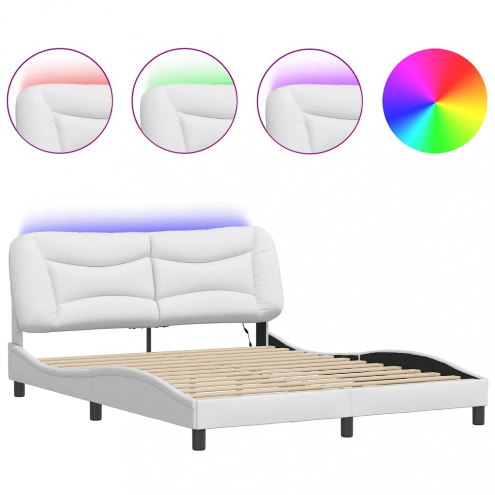 Cadru de pat cu LED fara saltea, Hvar, alb, 160x200 cm