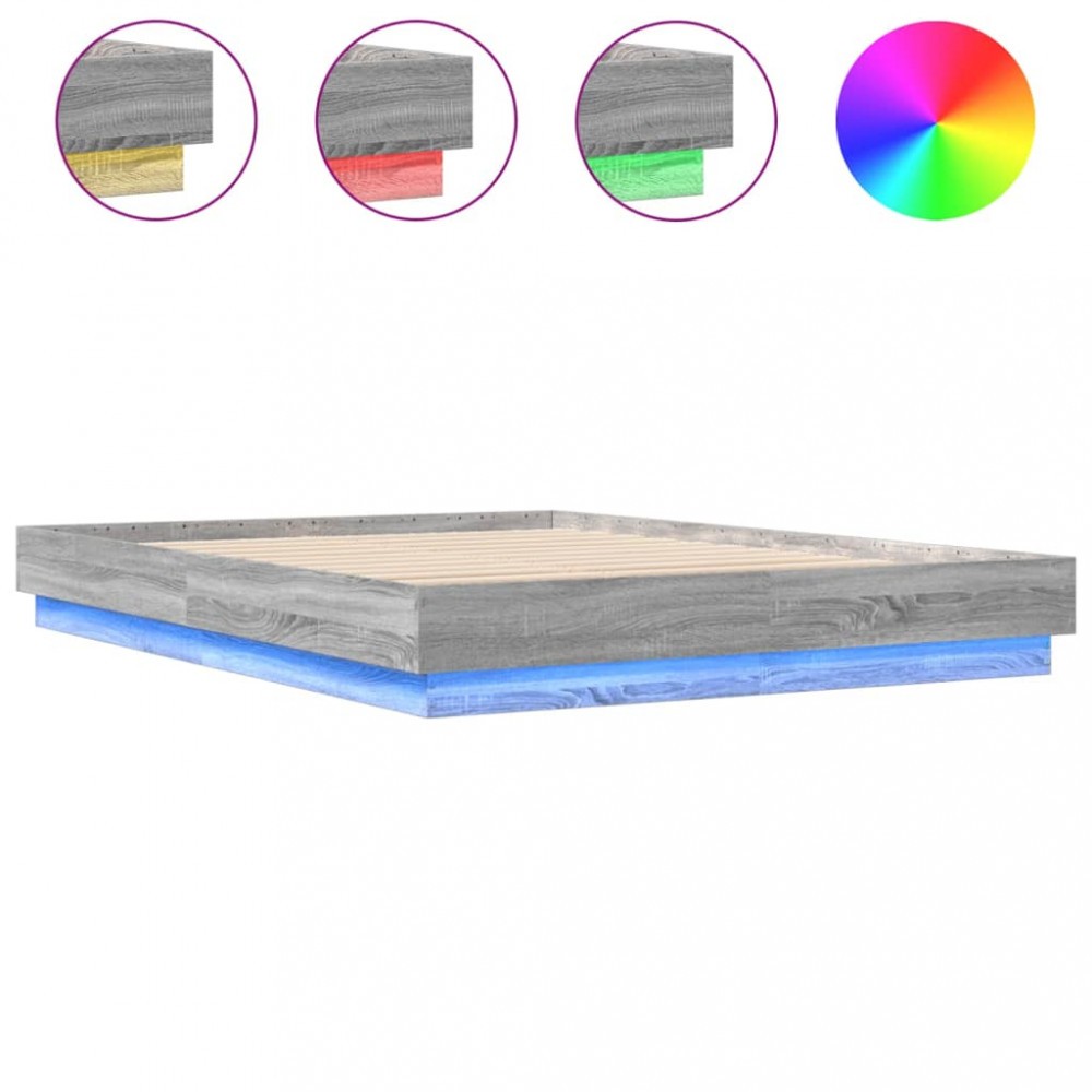 Cadru de pat cu lumini LED, gri sonoma, 120x200 cm