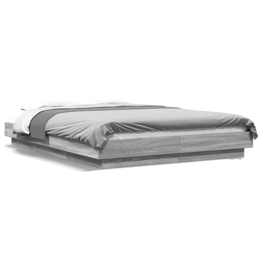 Cadru de pat cu lumini LED gri sonoma 120x200 cm lemn prelucrat