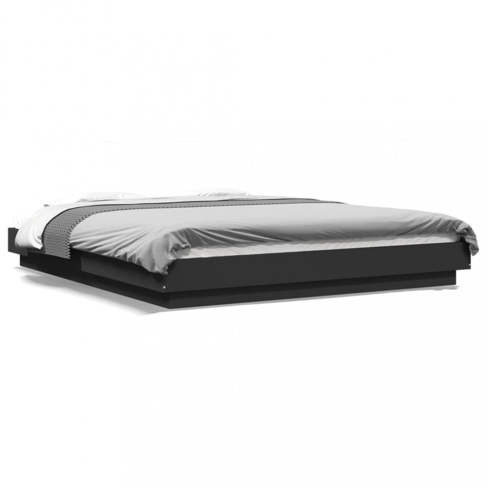 Cadru de pat cu lumini LED, negru, 150x200 cm, lemn prelucrat