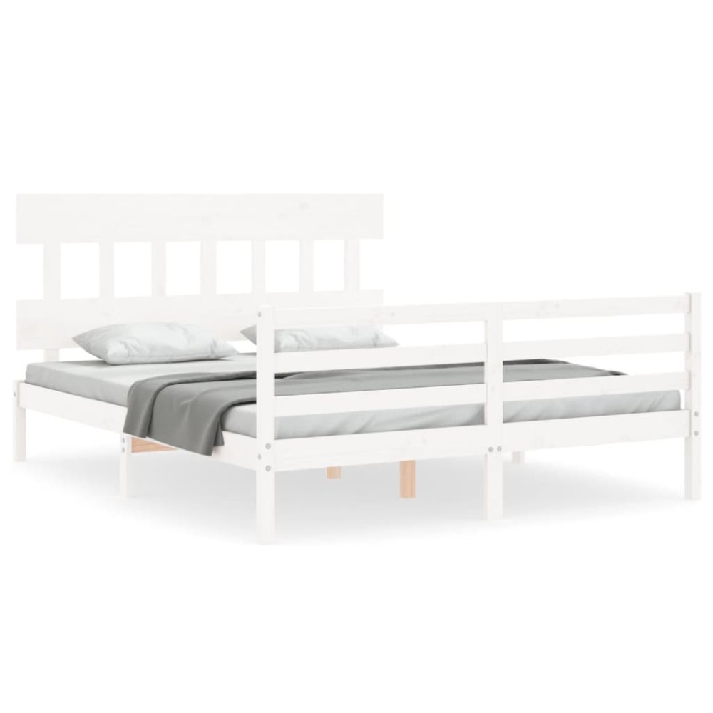 Cadru de pat cu tablie, alb, 160x200 cm, lemn masiv