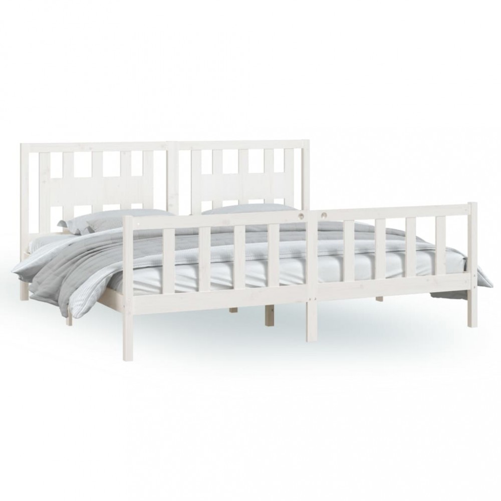 Cadru de pat cu tablie, alb, 200x200 cm, lemn masiv de pin