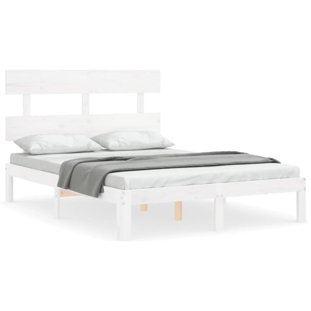 Cadru de pat cu tablie dublu mic, lemn masiv