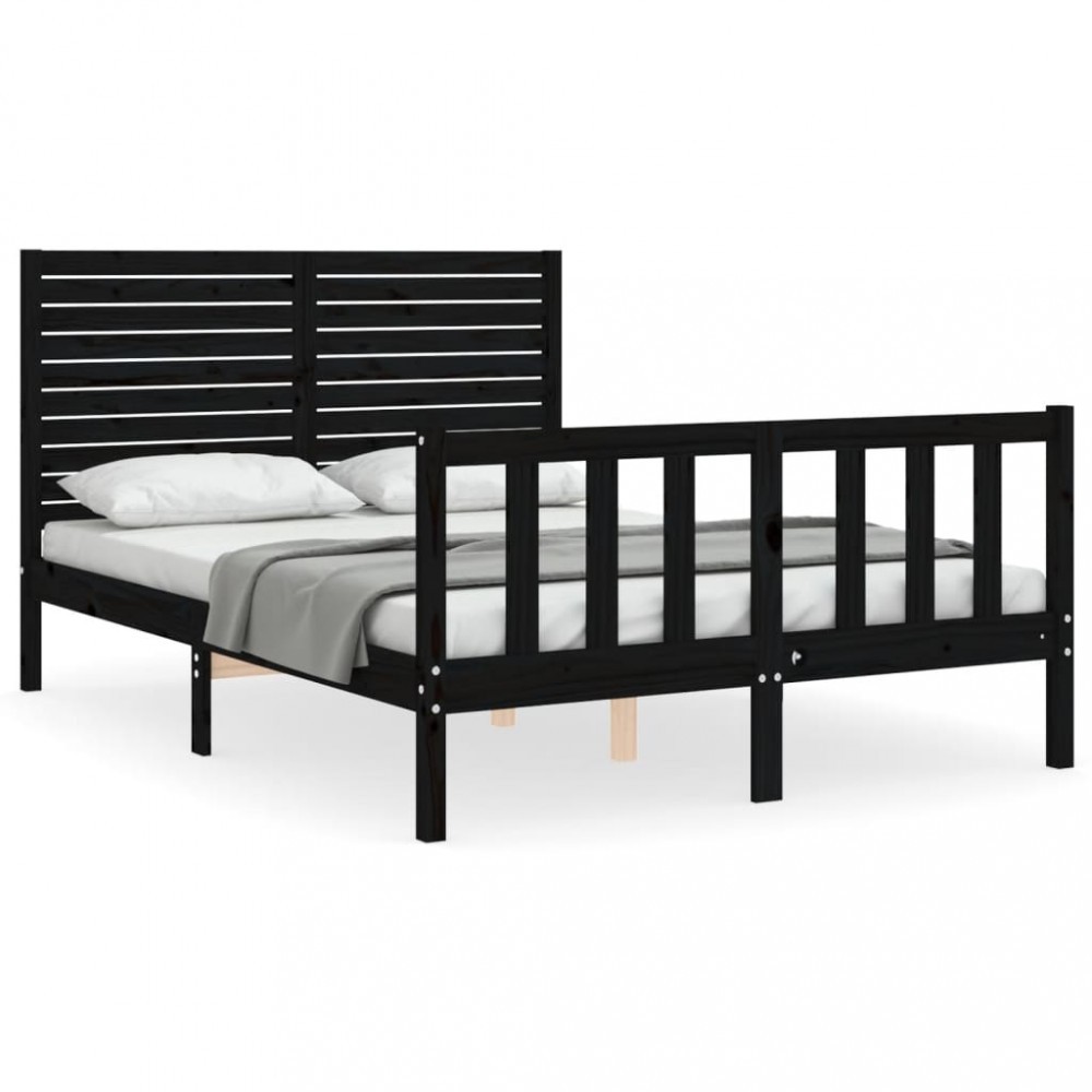 Cadru de pat cu tablie dublu, negru, lemn masiv