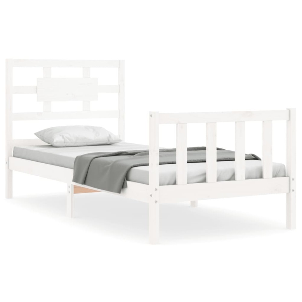 Cadru de pat cu tablie single, alb, lemn masiv