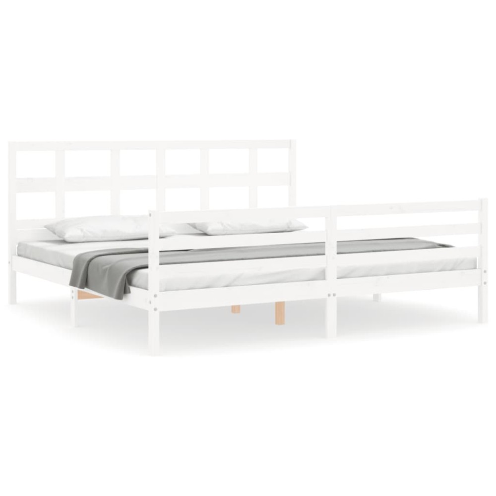 Cadru de pat cu tablie Super King Size, alb, lemn masiv