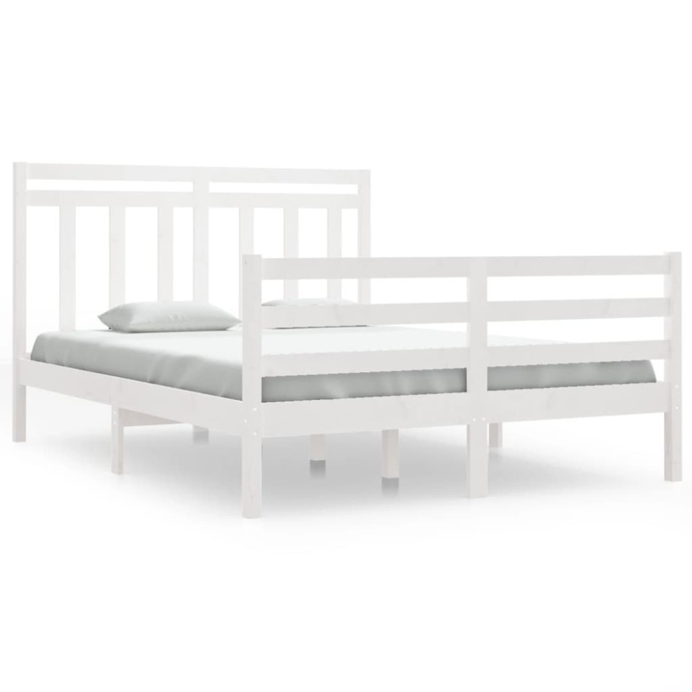 Cadru de pat dublu, alb, 135x190 cm, lemn masiv