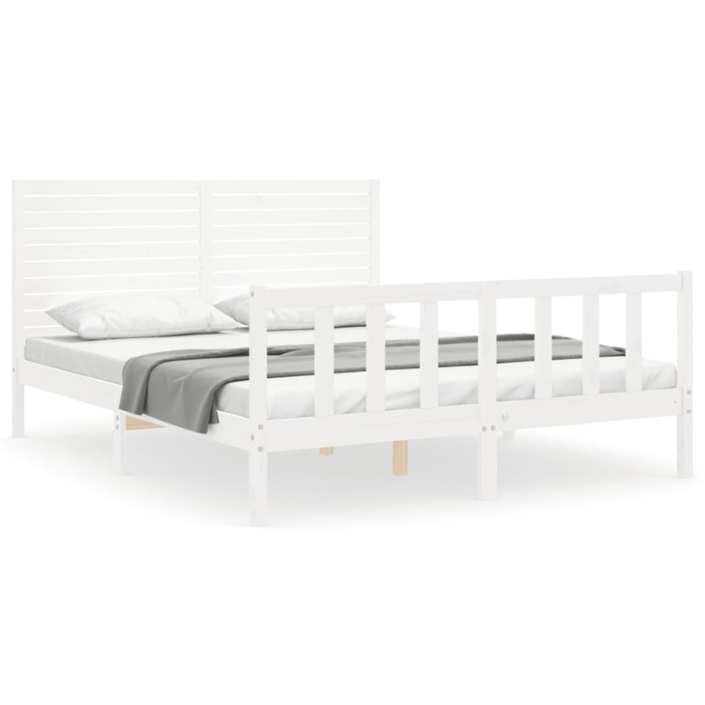 Cadru de pat fara saltea, alb, 160x200 cm, lemn masiv pin