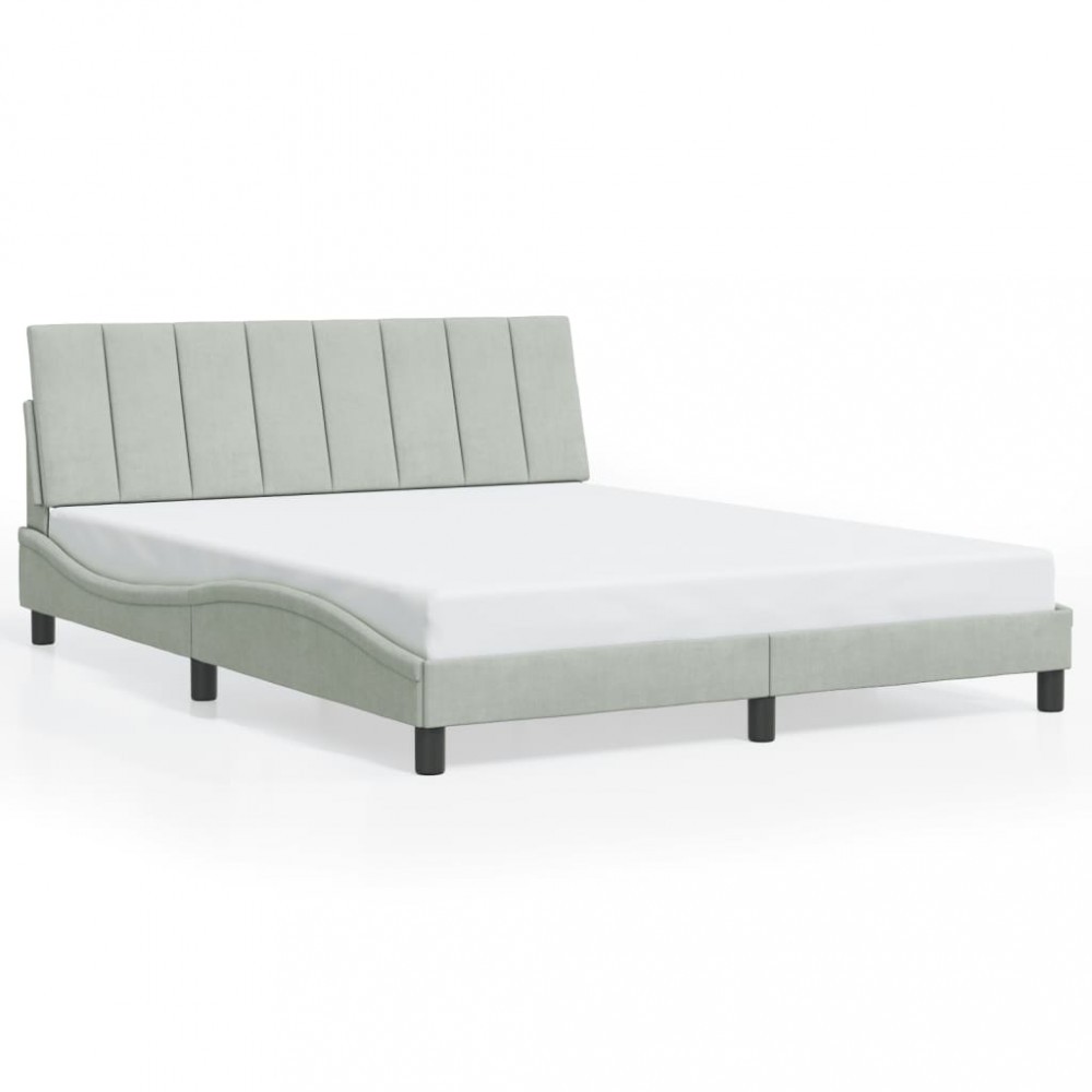 Cadru de pat fara saltea, Hanko, gri deschis, 160x200 cm, catifea