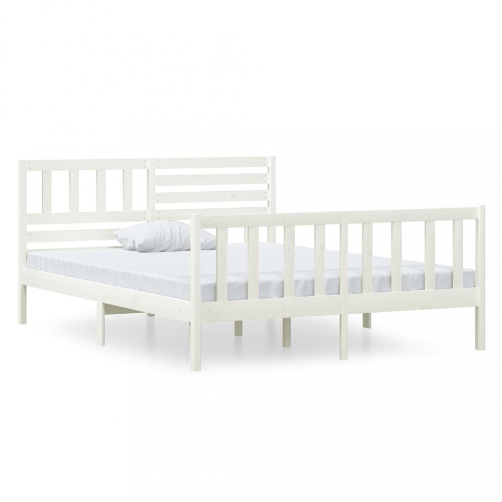 Cadru de pat mic dublu, alb, 120x190 cm, lemn masiv