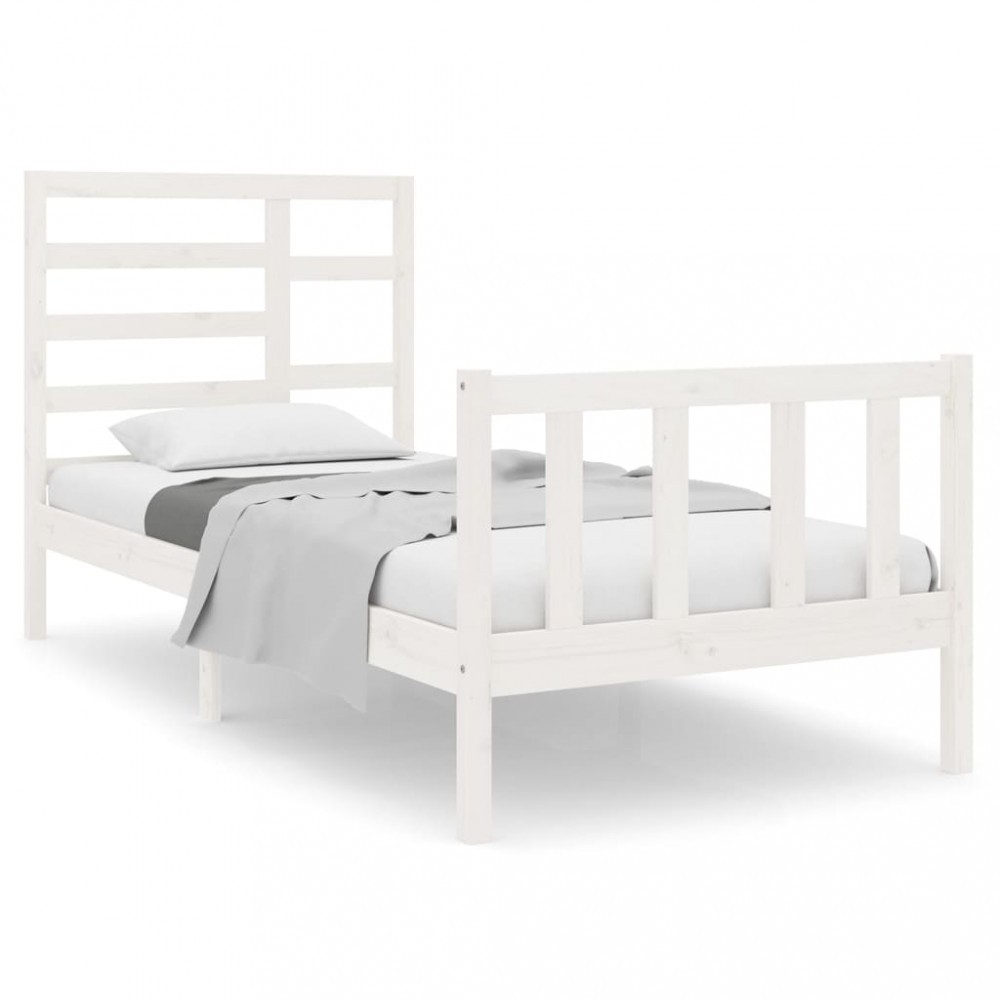 Cadru de pat mic single, alb, 75x190 cm, lemn masiv