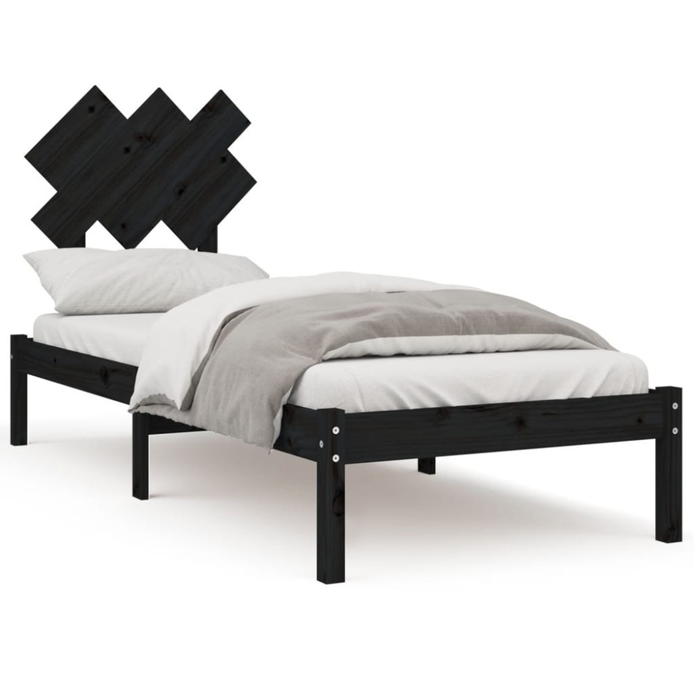 Cadru de pat mic single, negru, 75x190 cm, lemn masiv