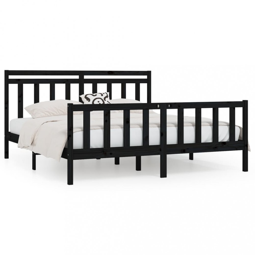 Cadru de pat, negru, 200x200 cm, lemn masiv de pin