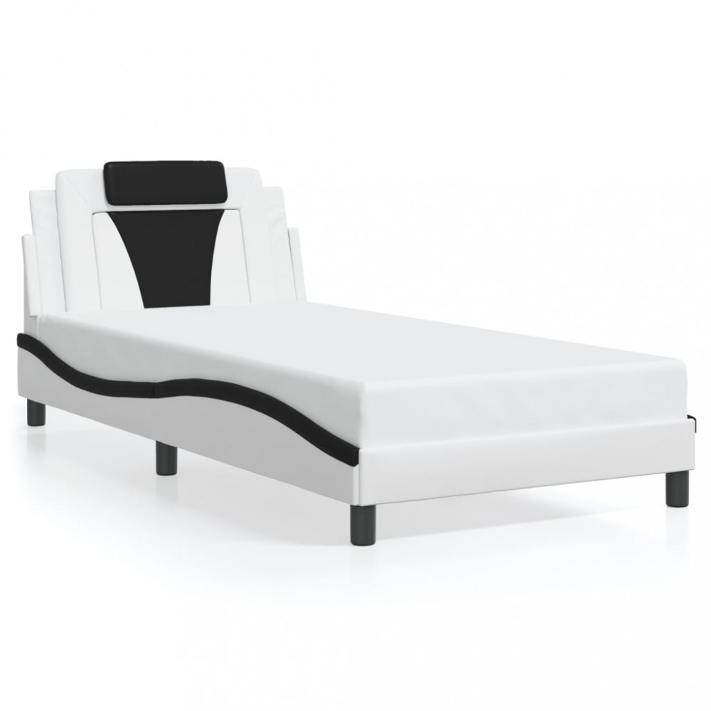 Cadru de pat Viana fara saltea alb si negru 100x200cm piele artificiala