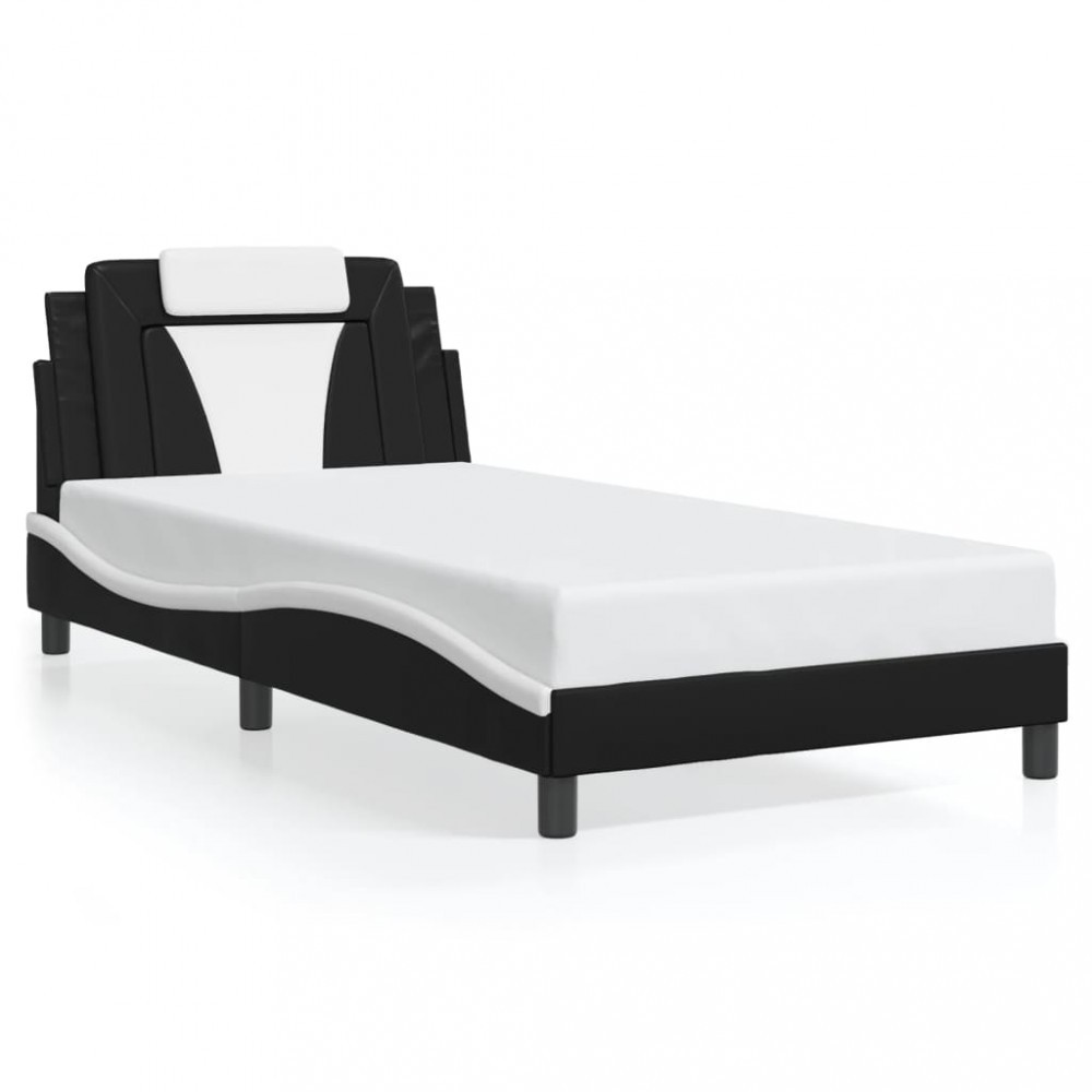 Cadru de pat Viana fara saltea negru si alb 100x200cm piele artificiala
