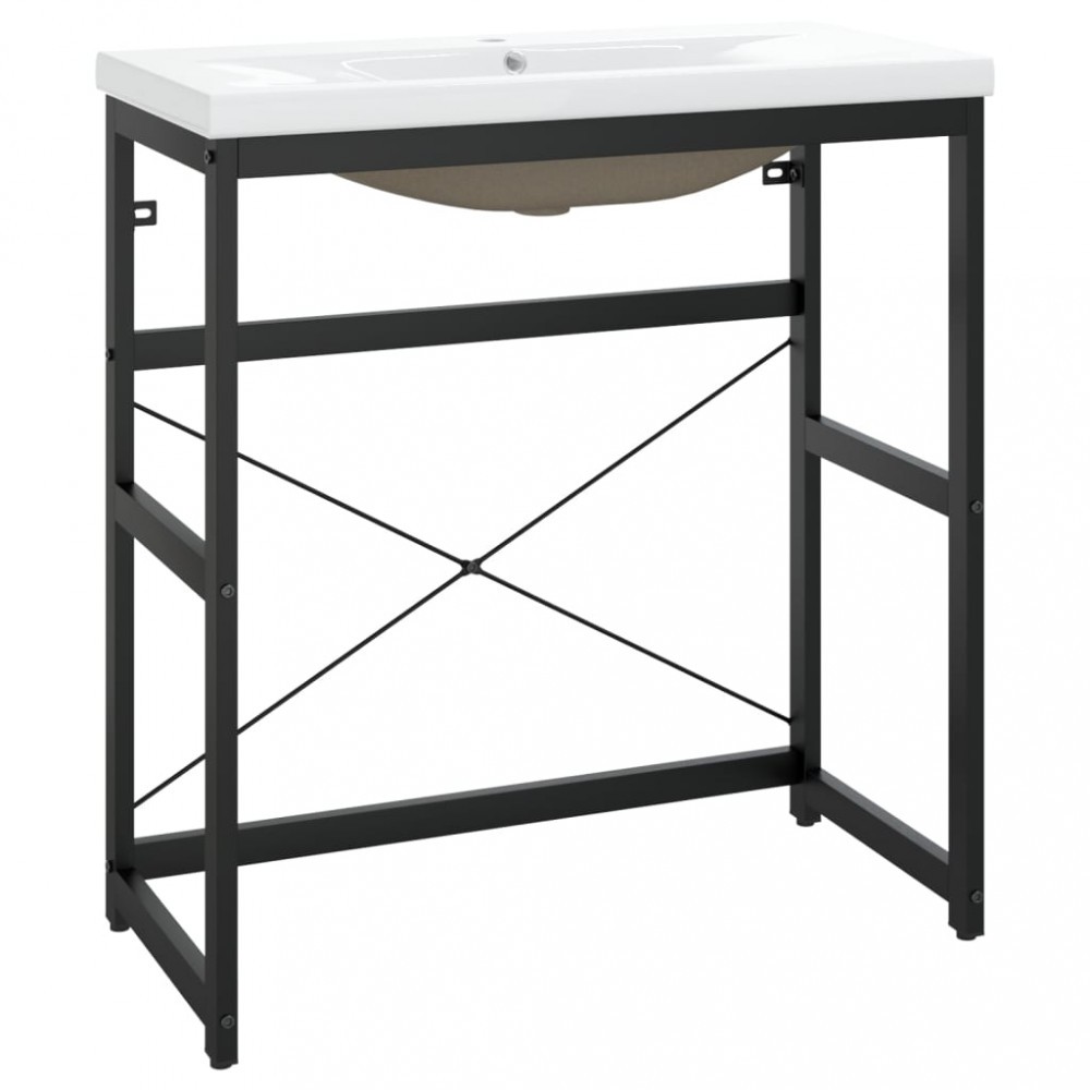 Cadru lavoar baie cu chiuveta incorporata, negru, fier