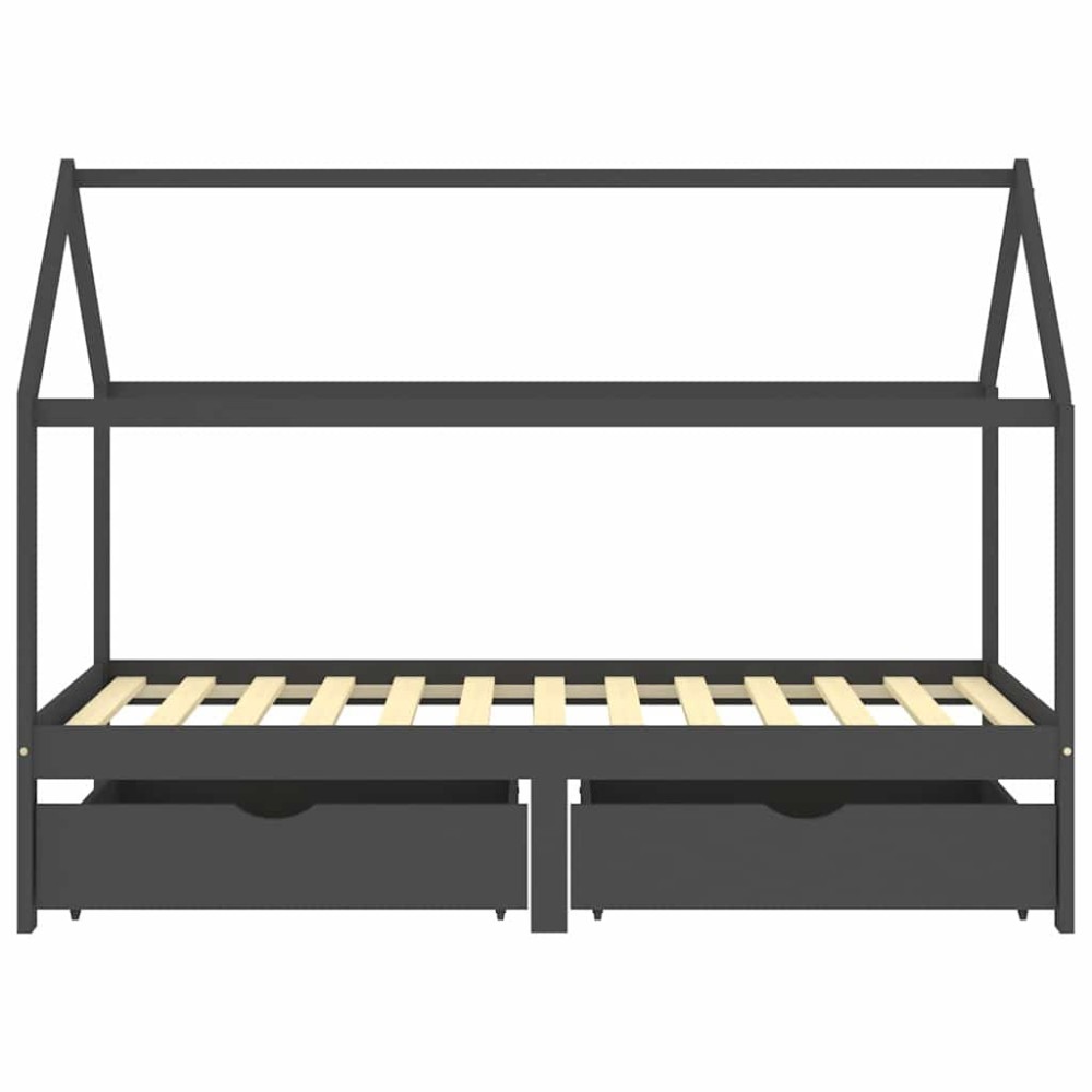 Cadru pat copii cu sertare gri inchis 90x200 cm lemn masiv pin