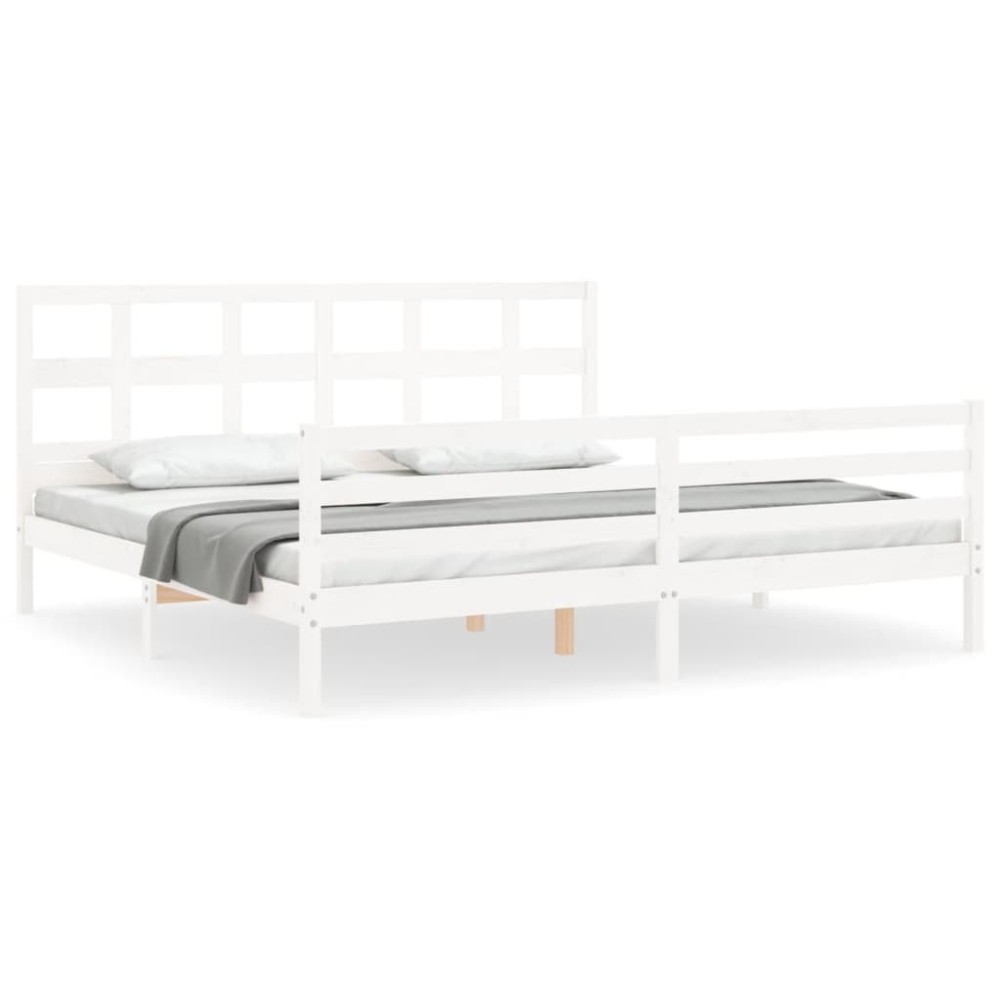 Cadru pat cu tablie 200x200 cm, alb, lemn masiv