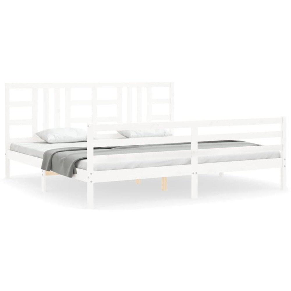 Cadru pat cu tablie 200x200 cm, alb, lemn masiv