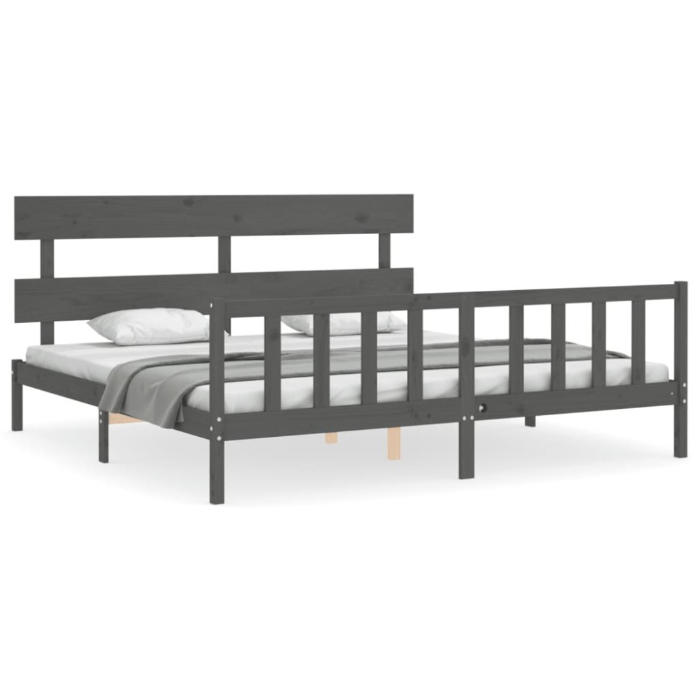 Cadru pat cu tablie 200x200 cm, gri, lemn masiv