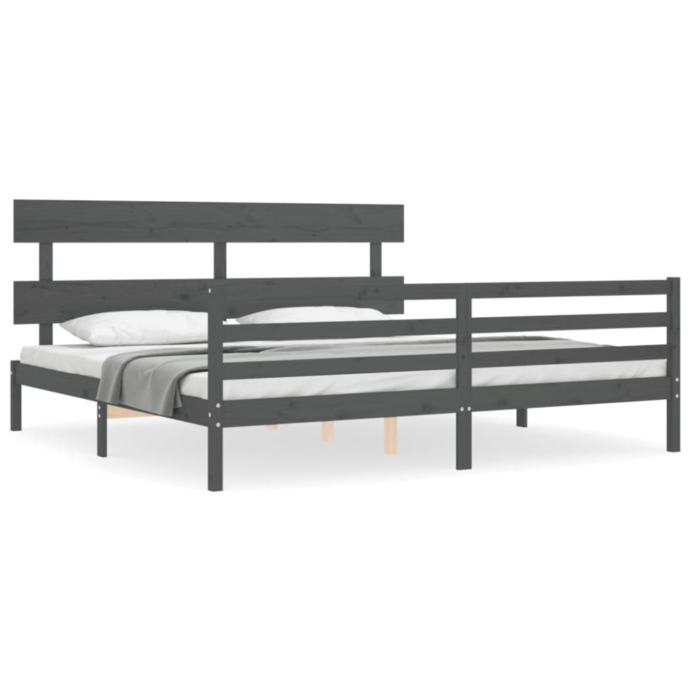 Cadru pat cu tablie 200x200 cm, gri, lemn masiv
