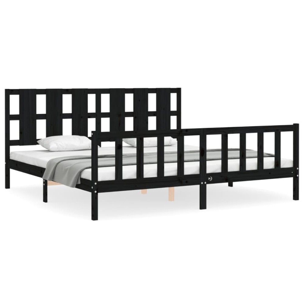 Cadru pat cu tablie 200x200 cm, negru, lemn masiv