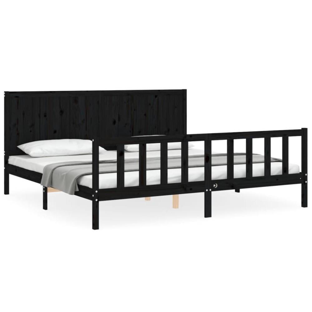 Cadru pat cu tablie 200x200 cm, negru, lemn masiv