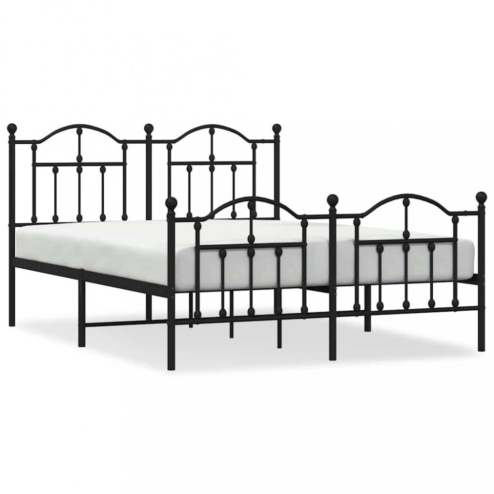 Cadru pat metalic cu tablie de cap/picioare, negru, 140x200 cm
