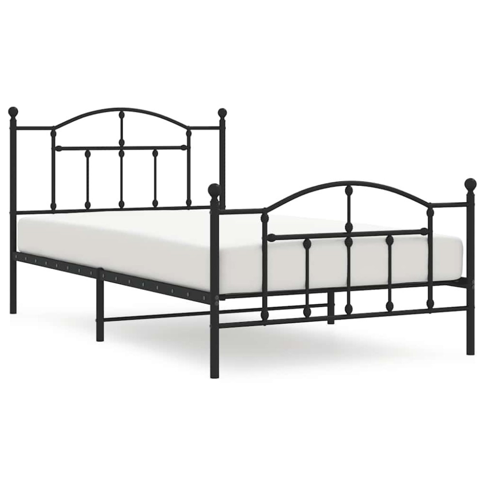 Cadru pat metalic cu tablii de cap/picioare, negru, 100x200 cm