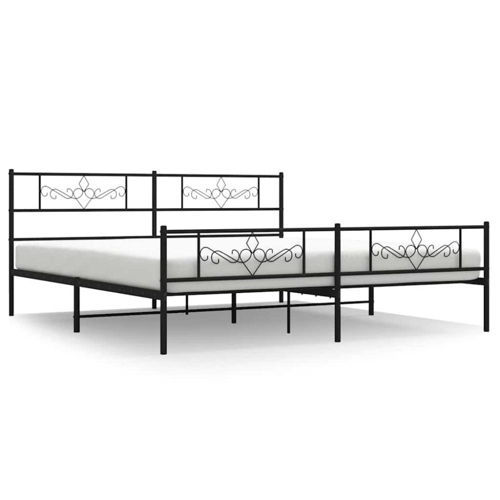 Cadru pat metalic cu tablii de cap/picioare, negru, 193x203 cm