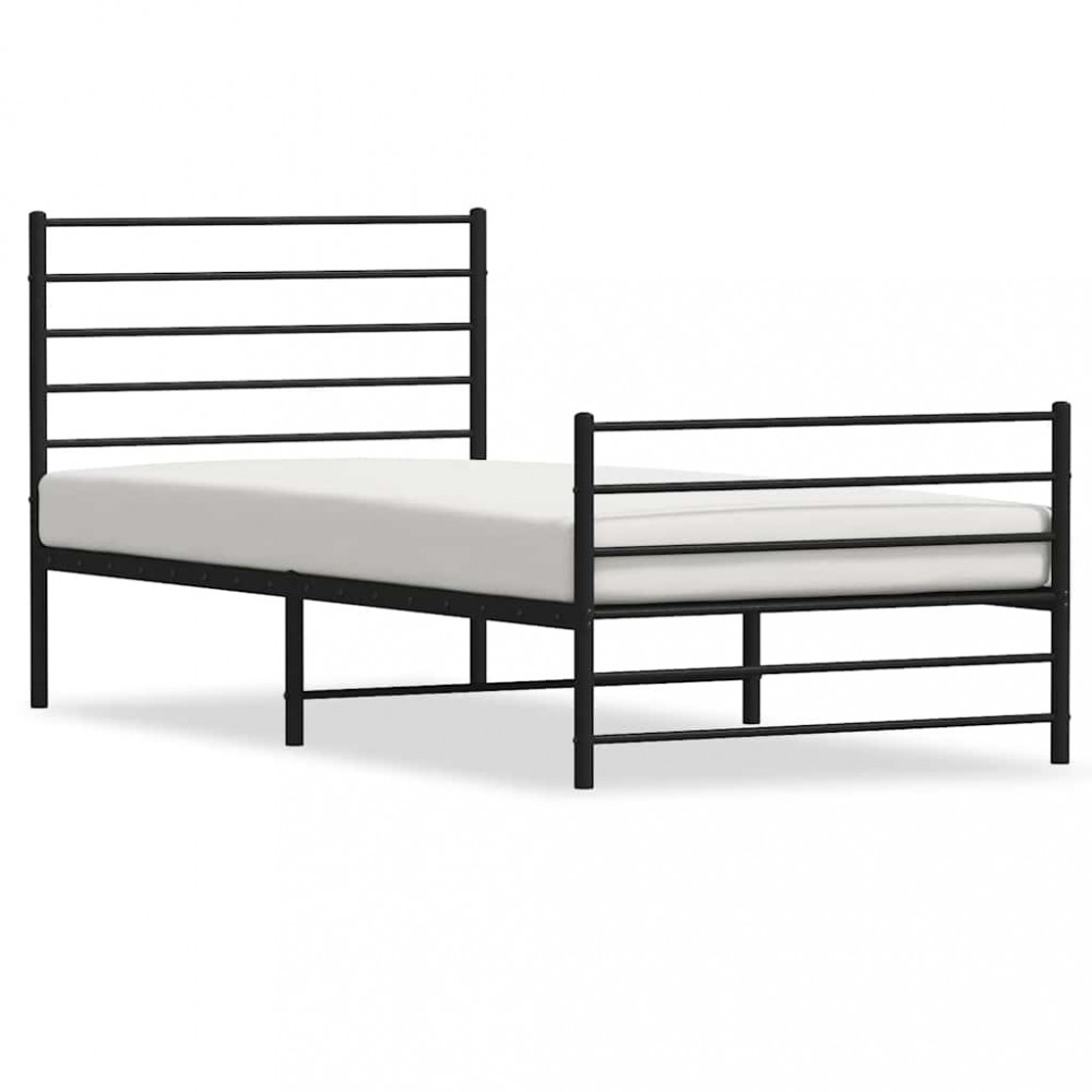 Cadru pat metalic cu tablii de cap/picioare, negru, 90x190 cm